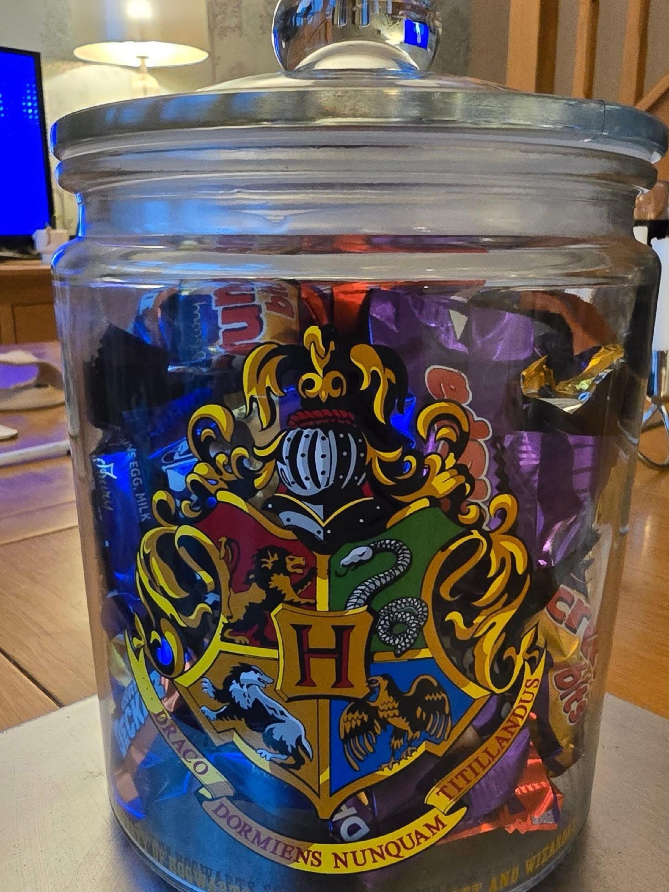 Vintage Style Wizarding World Harry Potter Hogwarts Glass Jar.