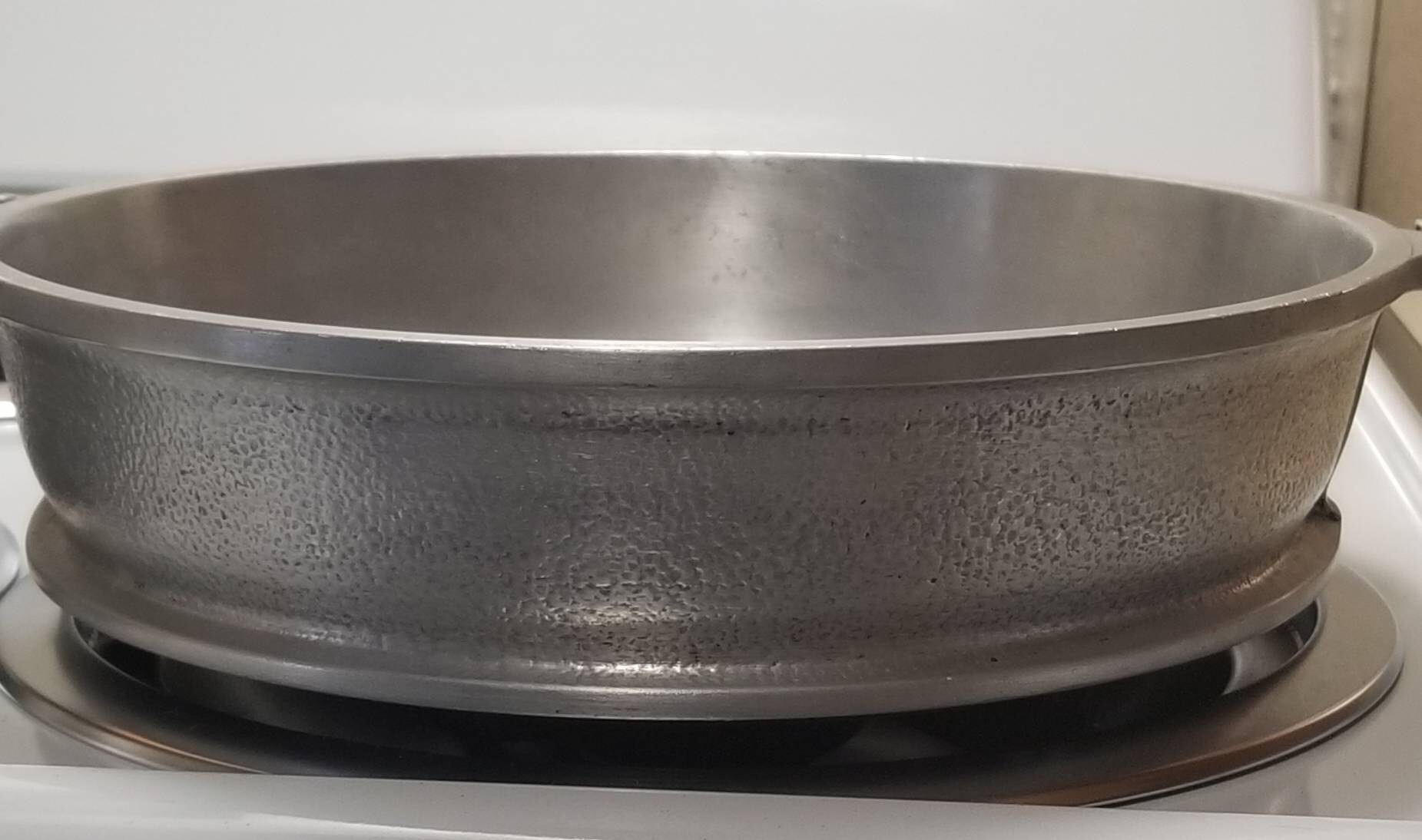 Set of five pieces of Silver Seal cookware (pre Guardian). Set includes pan 12 x 2.25", no lid, roaster with lid, 10 x 3,5, roaster with lid 12 x 4", all in excellent very clean condition.